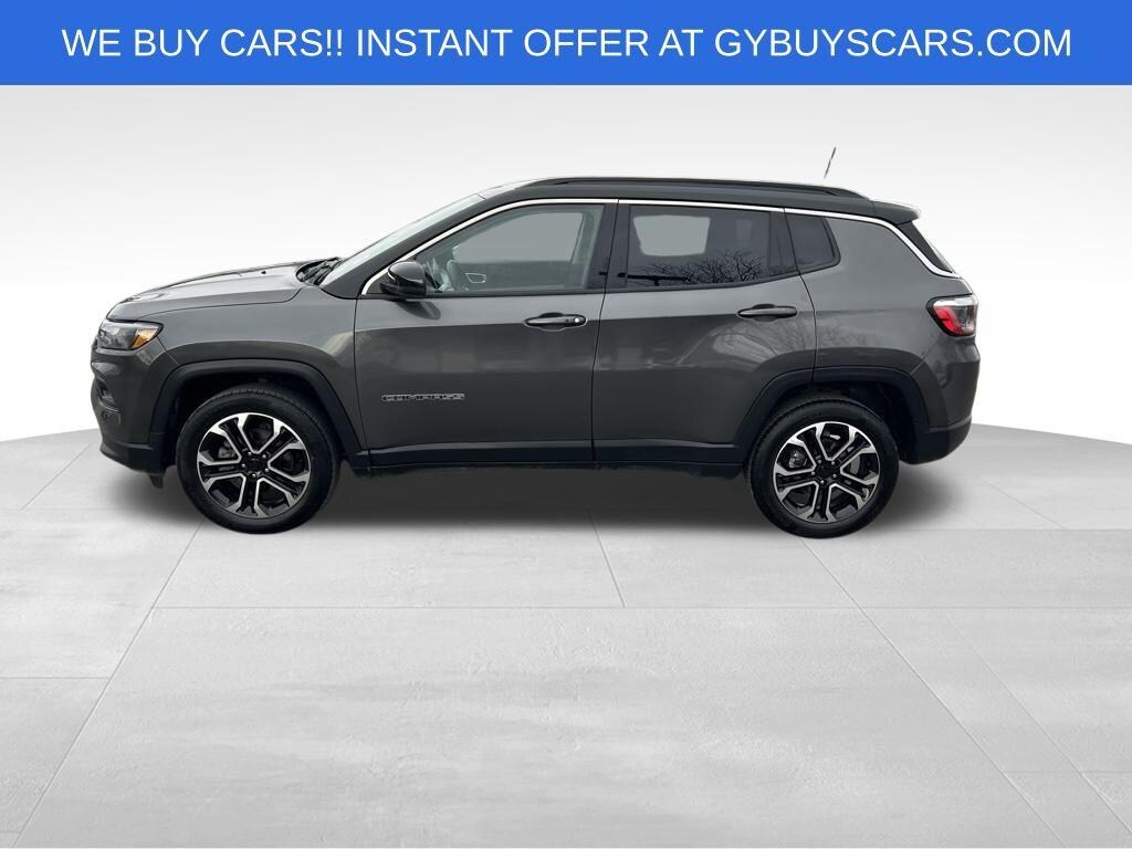 Why BUY from Gregg Young Chevy Omaha? When you choose this Granite Crystal Metallic Clearcoat 2022 Jeep Compass Limited with 21,719 miles, you are not just buying a used vehicle - you are investing in quality, reliability and peace of mind. Our clientele depend on us for Transparent Pricing, Convenience and, most importantly, Customer FIRST Service! All purchases include 5 year Complimentary Maintenance Package, valued at over $1,000! No Accidents! One Owner! What this vehicle includes: Quick Order Package 2GG Comfort Heated steering wheel - A warm touch. Trying to drive with bulky winter gloves on isn't always easy. Keep your hands warm in cold temperatures so you can ditch the mitts and get a firm grip with this heated steering wheel.Convenience Smart device and keyfob engine start control - Phone ahead. Remotely start your vehicle's engine from the key fob or your smart device, ensuring your ride is ready to go when you get in. Now you can stay comfortable inside while your vehicle gets comfortable outside, ,thanks to Smart device and Keyfob engine start control. Keyfob engine start control - Get an early start. Remotely start your vehicle's engine from the key fob, ensuring your ride is ready to go when you get in. Now you can stay comfortable inside while your vehicle gets comfortable outside, thanks to Keyfob engine start control.Safety and Security Blind spot warning - Protect your blind side. You checked the mirror, looked over your shoulder and still nearly collided with the car next to you. Blind spot warning alerts you to the presence of a vehicle to your sides or rear so you know if you're about to make an unsafe lane change. Replace fear and uncertainty with confidence and safety with blind spot warning.Technology and Telematics Smart device mirroring - Smartphone, meet smart car. You can control your device through your vehicle's infotainment system. Smart device mirroring brings together safety and convenience by making it easier to find what you're looking for while keeping your eyes on the road. ENGINE: 2.4L I4 ZERO EVAP M-AIR W/ESS, TRANSMISSION: 9-SPEED 948TE AUTOMATIC, QUICK ORDER PACKAGE 2GG, WHEELS: 18" X 7" PAINTED DIAMOND CUT ALUMINUM, TIRES: 225/55R18 BSW AS, TU-TONE PAINT GROUP, GRANITE CRYSTAL METALLIC CLEARCOAT, BLACK CLEARCOAT, BLACK, LEATHER TRIMMED BUCKET SEATS When you choose a Certified Pre-Owned vehicle from Gregg Young, youre not just buying a used car youre getting extra protection, added peace of mind, and built-in value you wont find with an ordinary pre-owned vehicle. Every Certified Pre-Owned vehicle must pass an extensive 172-point inspection performed by trained technicians. From engine and transmission performance to interior quality, safety features, and road-test standards, we verify the vehicle meets strict certification requirements before it ever reaches our lot. Ask if this vehicle qualifies for our Certified Pre-Owned Program 12-Month / 12,000-Mile Premier Coverage Drive confidently from day one. Our Premier Warranty* protects you against unexpected repairs for your first 12 months or 12,000 miles. Whats covered? Practically all major vehicle components (excluding maintenance items and wear-and-tear parts) Electrical, mechanical, interior, exterior, and more giving you true peace of mind with your purchase. 36-Month / 100,000-Mile Powertrain Protection Our Certified Powertrain Warranty** keeps you covered long after you leave the dealership, protecting many of your vehicles most important and expensive components for up to 36 months or 100,000 miles. What's covered? Engine Parts Transmission/Transaxle Parts Drive Axle Parts Hybrid Components Transfer Case Components Come on in to Gregg Young Chevy Omaha today at 17750 Burt St Omaha NE 68118 or call (888) 617-6478 to schedule a test drive! What sets Gregg Young Chevrolet of Omaha apart? Family-run leadership Gregg Young and his children actively manage the dealership, blending experience with a personal touch. Community commitme