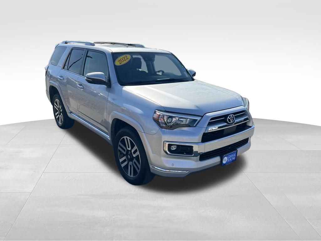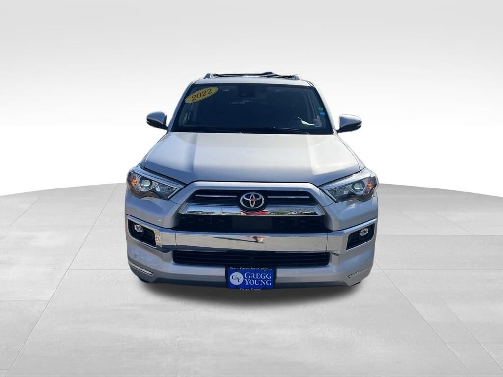 **2022**Toyota**4Runner**Limited**4WD**Heated & Ventilated Front Seats**Leather Seats**Sunroof**Navigation**Our 2022 Toyota 4Runner Limited 4WD in Nautical Blue Metallic knows how to treat you right! Powered by a 4.0 Liter V6 generating 270hp paired to a 5 Speed Automatic transmission for premium capability. This Four Wheel Drive SUV also features an X-REAS sports suspension for enhanced performance even on challenging terrain, and it sees nearly 19mpg on the highway. You'll love how our 4Runner feels ready for anything and looks fantastic with LED lighting, fog lamps, a power sunroof, 20-inch alloy wheels, chrome accents, a full skid plate, and heated power mirrors with built-in turn signals.Take on your next adventure with top-notch comfort in our Limited cabin, which provides perforated leather heated/ventilated power front seats, a leather-wrapped steering wheel, dual-zone automatic climate control, Smart Key access, and pushbutton start. Advanced technology helps keep you connected with an 8-inch touchscreen, full-color navigation, Android Auto/Apple CarPlay, Amazon Alexa/WiFi compatibility, and a 15-speaker JBL sound system.A backup camera and innovative Toyota Safety Sense technology, including adaptive cruise control, lane departure alert, automatic emergency braking, and pedestrian detection, help you stay out of harm's way. Our 4Runner Limited puts your needs first! Save this Page and Call for Availability. We Know You Will Enjoy Your Gregg Young Chevrolet Omaha Test Drive Towards Ownership! We offer PRE-APPROVAL programs so call (402) 572-8080 to get started today! At Gregg Young Chevrolet... We'll Go The Extra Mile For You. We have an app for that! Download the Gregg Young Chevrolet application directly to your iPhone or Android.
