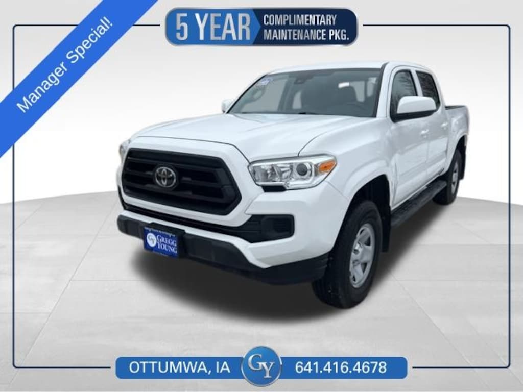 A wise choice, our **Accident Free**2023**Toyota**Tacoma**SR**Double Cab**4X4**Apple CarPlay/Android Auto**Rear Camera** is here to help on your next drive in Ice Cap! Powered by a 3.5 Liter V6 that generates 278hp connected to a 6 Speed Automatic transmission for spirited performance. This Four Wheel Drive truck also comes standard with an automatic limited-slip differential for enhanced control and returns nearly 22mpg on the highway. You can tell the world you're serious about trucking with our Tacoma's robust design, heated power mirrors, front skid plates, assist steps, a Class IV hitch receiver, and a rugged composite bed.